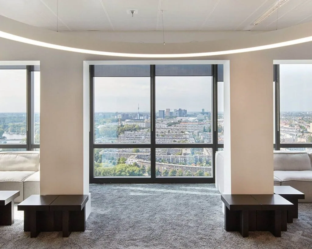 De Mondriaan Toren genoemd naar de Nederlandse schilder Piet Mondriaan, is een van de meest iconische wolkenkrabbers in Amsterdam. Dit indrukwekkende kantoorpand staat aan het Amstelplein op het bedrijventerrein de Omval, ten zuiden en op loopafstand van het Amstelstation. Goede bereikbaarheid, een adembenemend uitzicht en de luxueuze uitstraling maakt de Mondriaan Toren een zeer bijzonder kantoorgebouw. Op de 26e verdieping bevindt zich een business center. Met kantoren van de hoogste kwaliteit, met een prachtige receptie, diverse flexwerkplekken en de mogelijkheid om te vergaderen op grote hoogte met uitzicht op de skyline van Amsterdam. Of u nu op zoek bent naar een kantoor voor twee personen of interesse heeft in grotere kantoorruimtes, de Mondriaan Toren biedt het allemaal. Mondriaantoren is gelegen aan het Amstelplein, vlak naast de Amstelrivier en is omgegeven van restaurants, cafés, fitnesscentra, theaters en winkels. Bereikbaarheid Mondriaantoren ligt op slechts een steenworp afstand van Amsterdam Zuid en het centrum van de stad. Met de trein, metro, tram of bus vanaf Amstel Station bent u binnen een paar minuten in het hart van Amsterdam. Vanaf de ring A10, kunt u binnen een paar minuten het kantoorpand bereiken. De onderliggende parkeergarage biedt volop parkeergelegenheid.