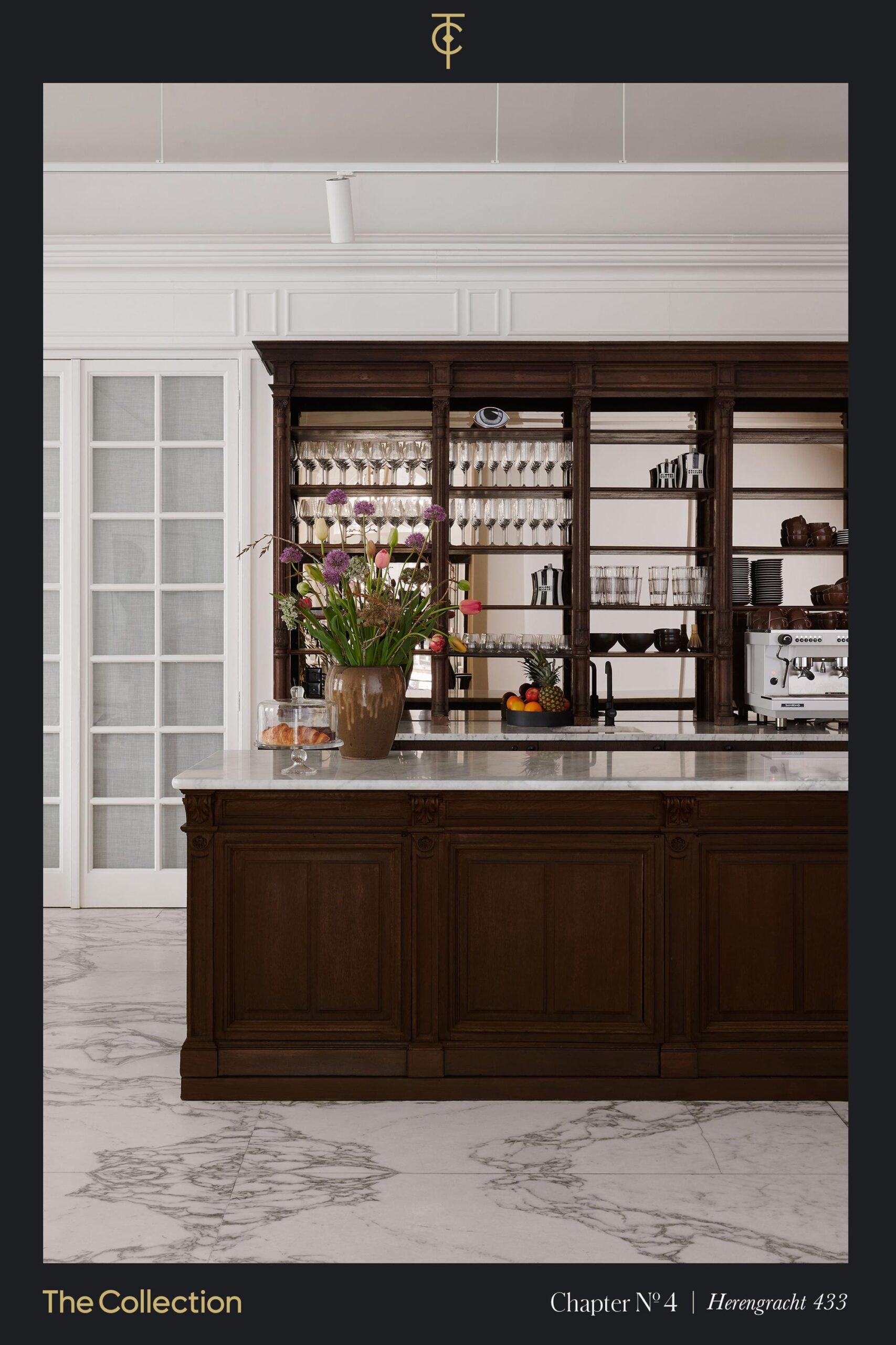 A radiant jewel in the crown of The Collection, Herengracht 433 is a stately 18th Century mansion with attendant stables and coach house just around the corner from the Koningsplein in the most prestigious stretch of the canal belt. Built in 1717 to a design by Marseille-born architect Jean Coulon, the property was commissioned by the wealthy merchant Joan d’Orville and has retained several beautiful period rooms from the time of its construction, including its grand foyer and a library overlooking the tree-lined canal and its fascinating traffic.