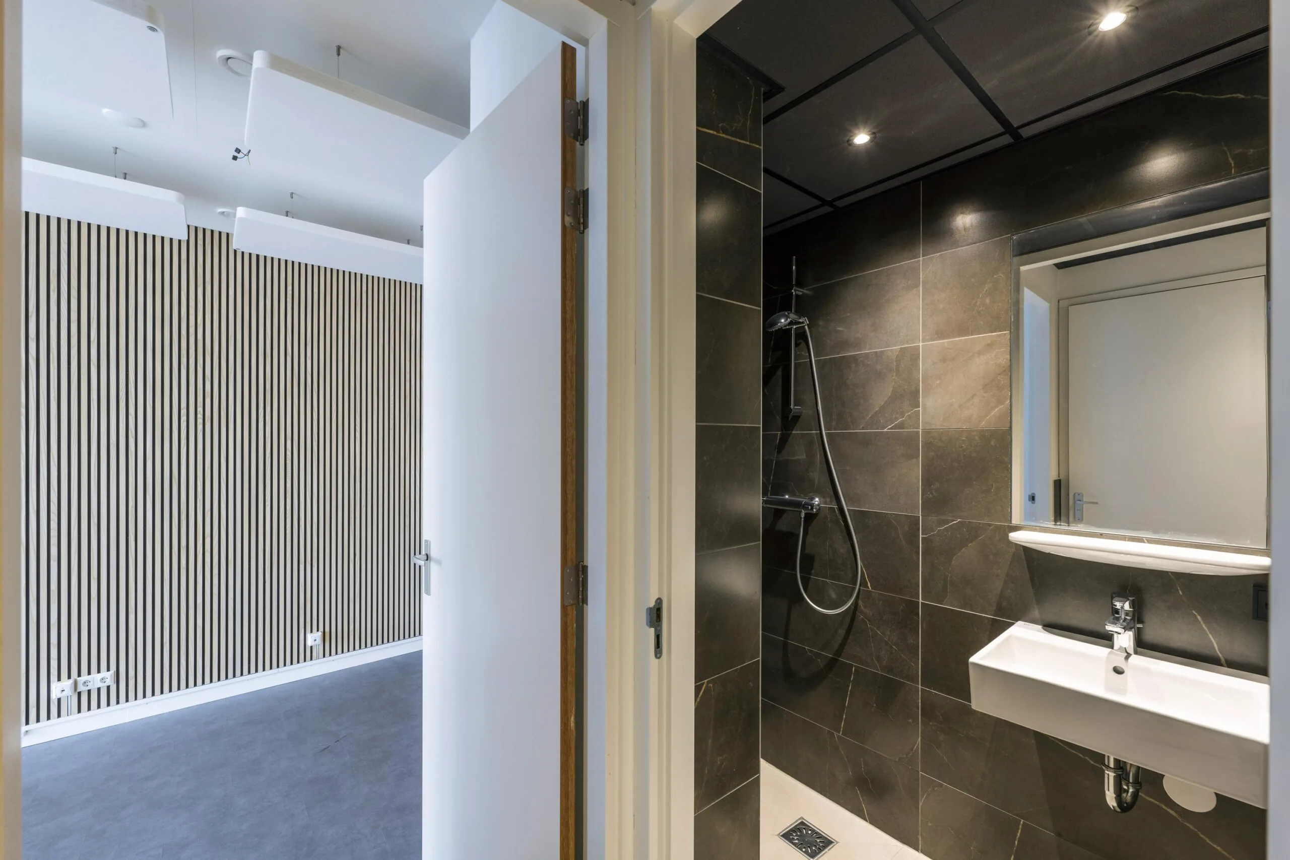 Dankzij de eigen entree is de ruimte volledig zelfstandig en zichtbaar. De afwerking is modern en verzorgd, wat direct bijdraagt aan een professionele uitstraling. Daarnaast is de ruimte voorzien van praktische faciliteiten zoals een goederenlift, pantry en een douche.