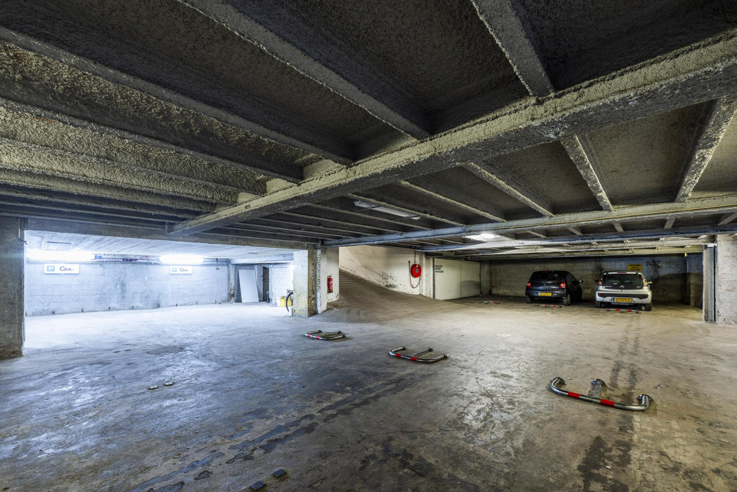 Er bevindt zich een parkeergarage onder het gebouw.