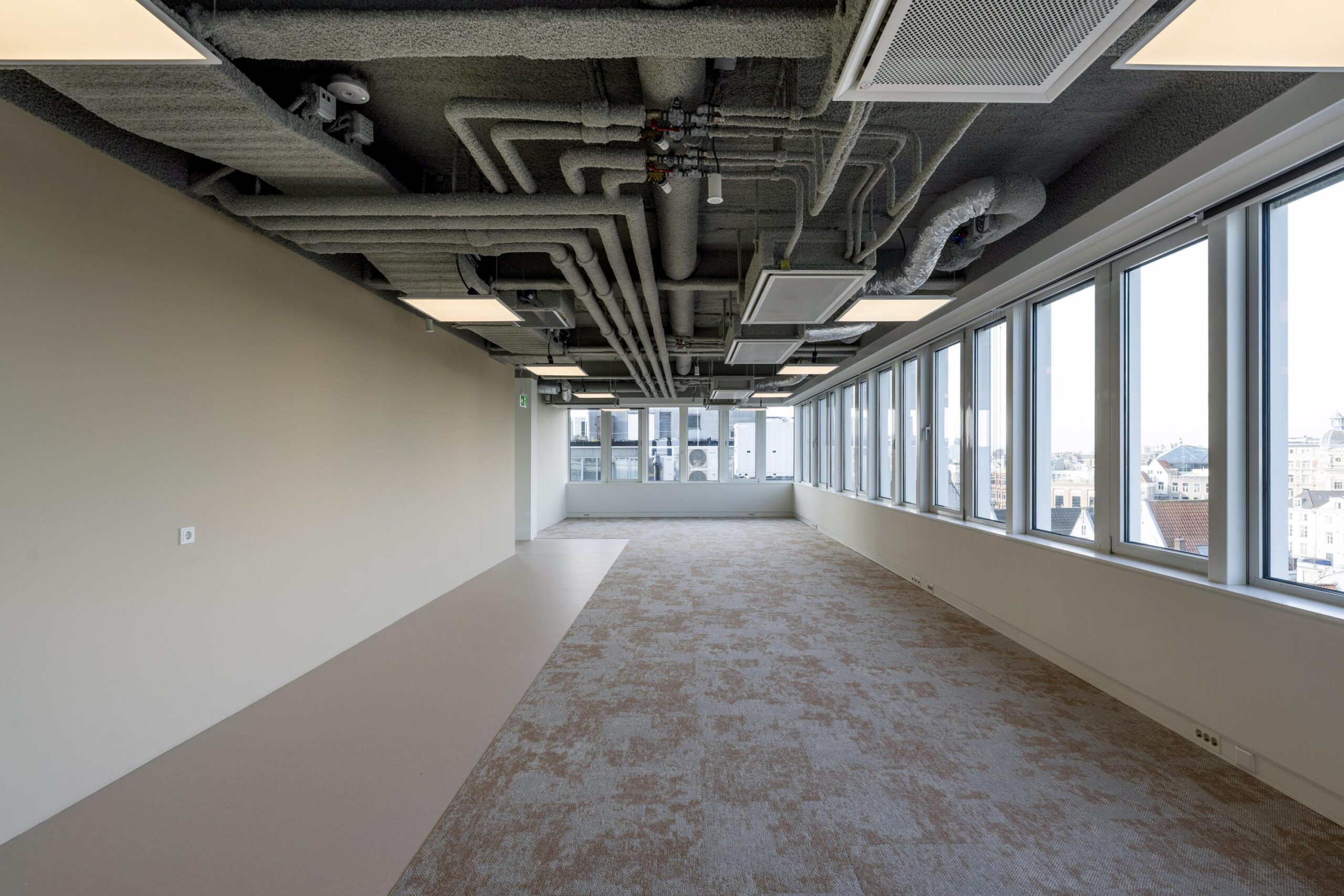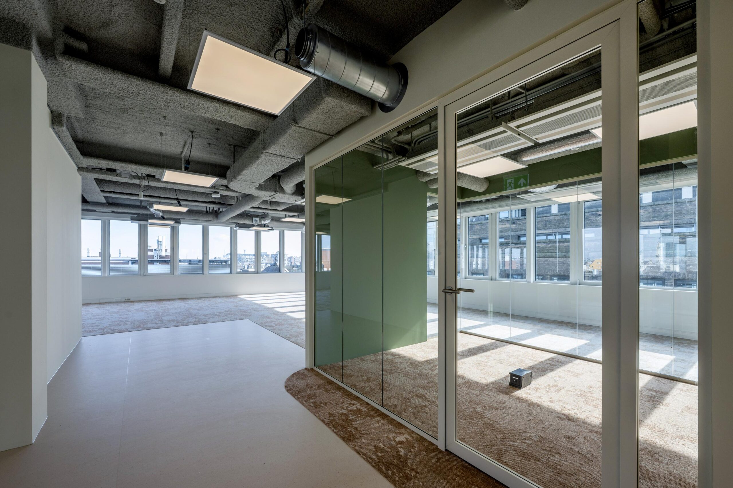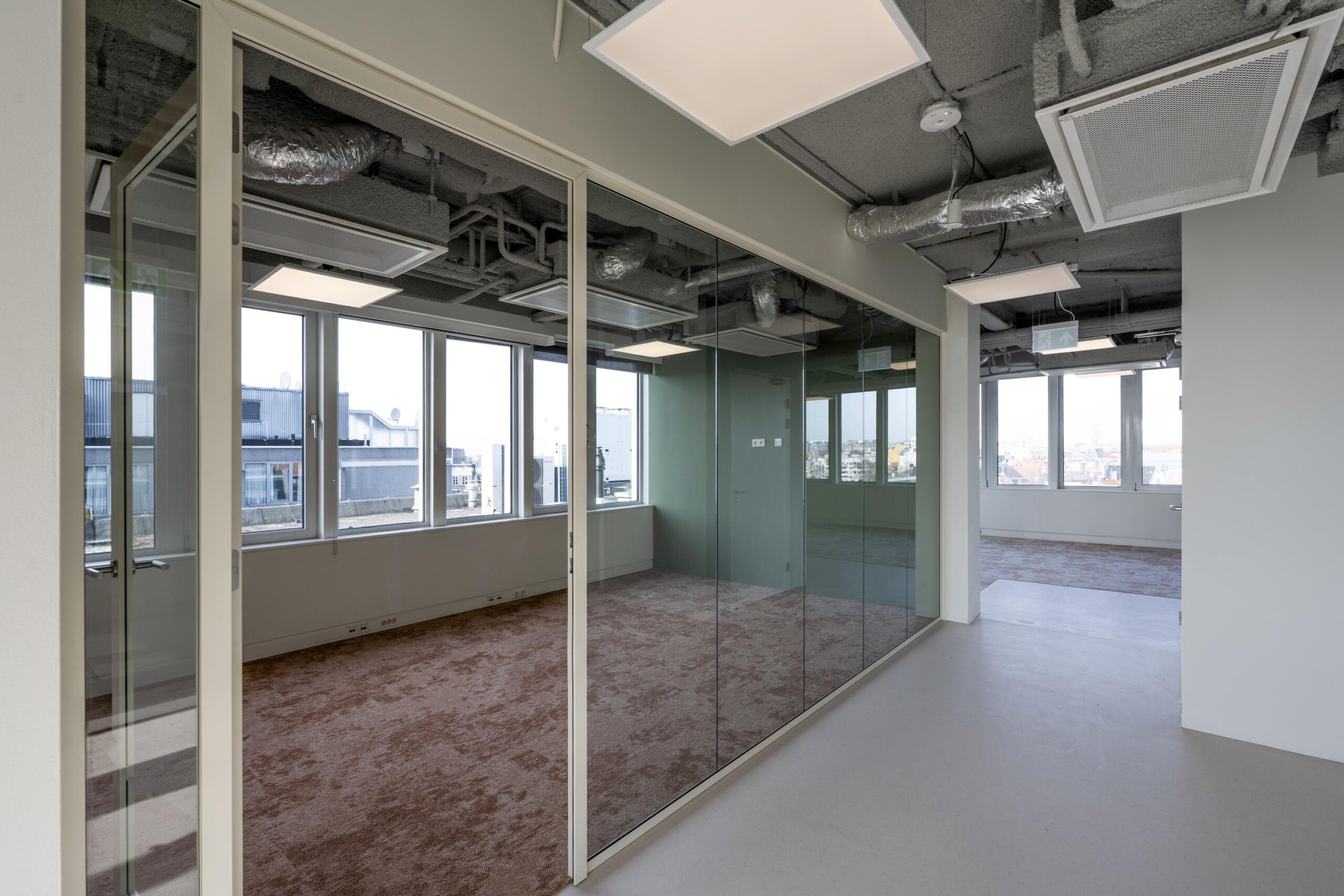 De ruimtes worden turn-key opgeleverd met o.a. volledig afgewerkte vloeren, verlichting, meeting rooms, pantry’s, klimaatinstallatie, toiletten etc.