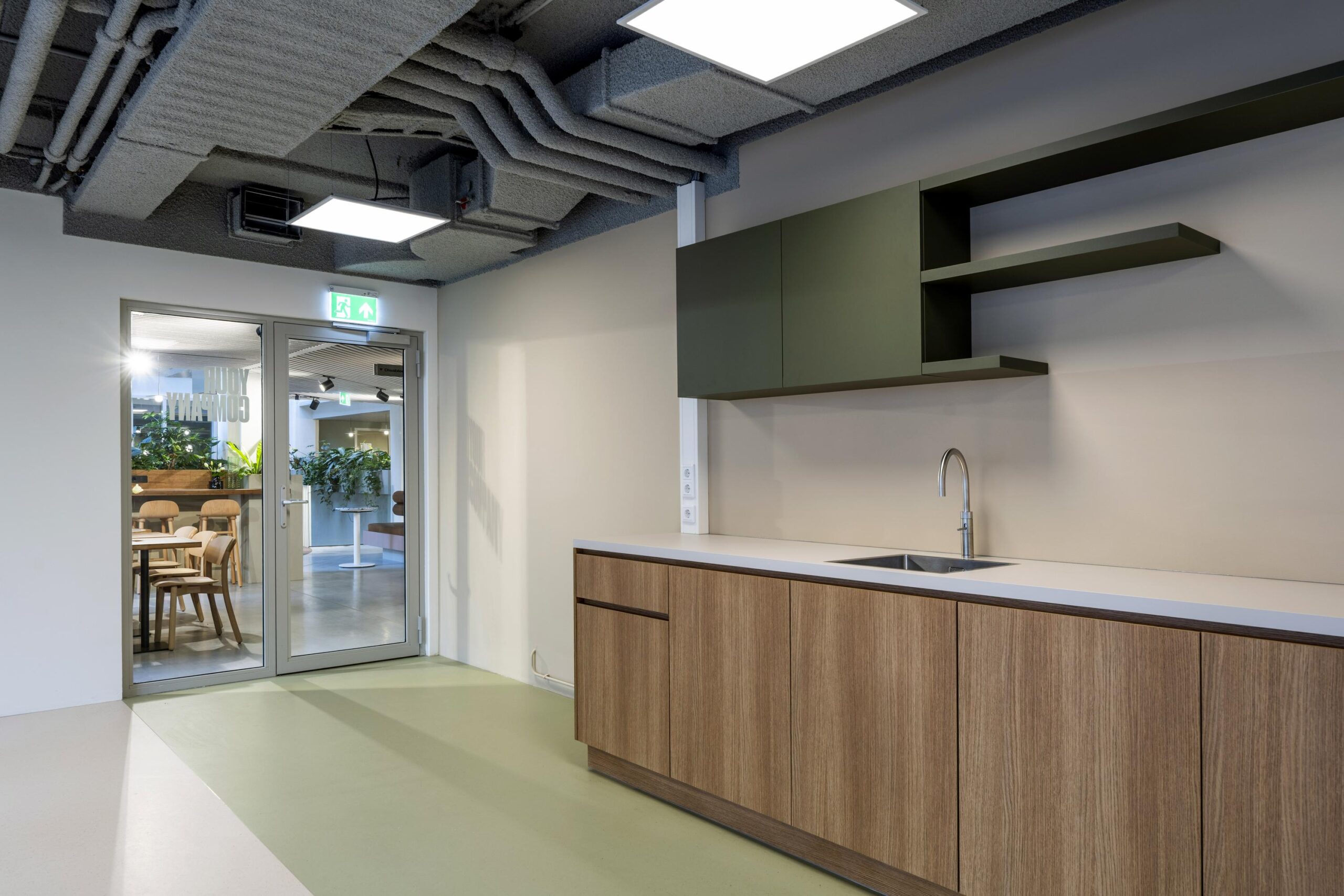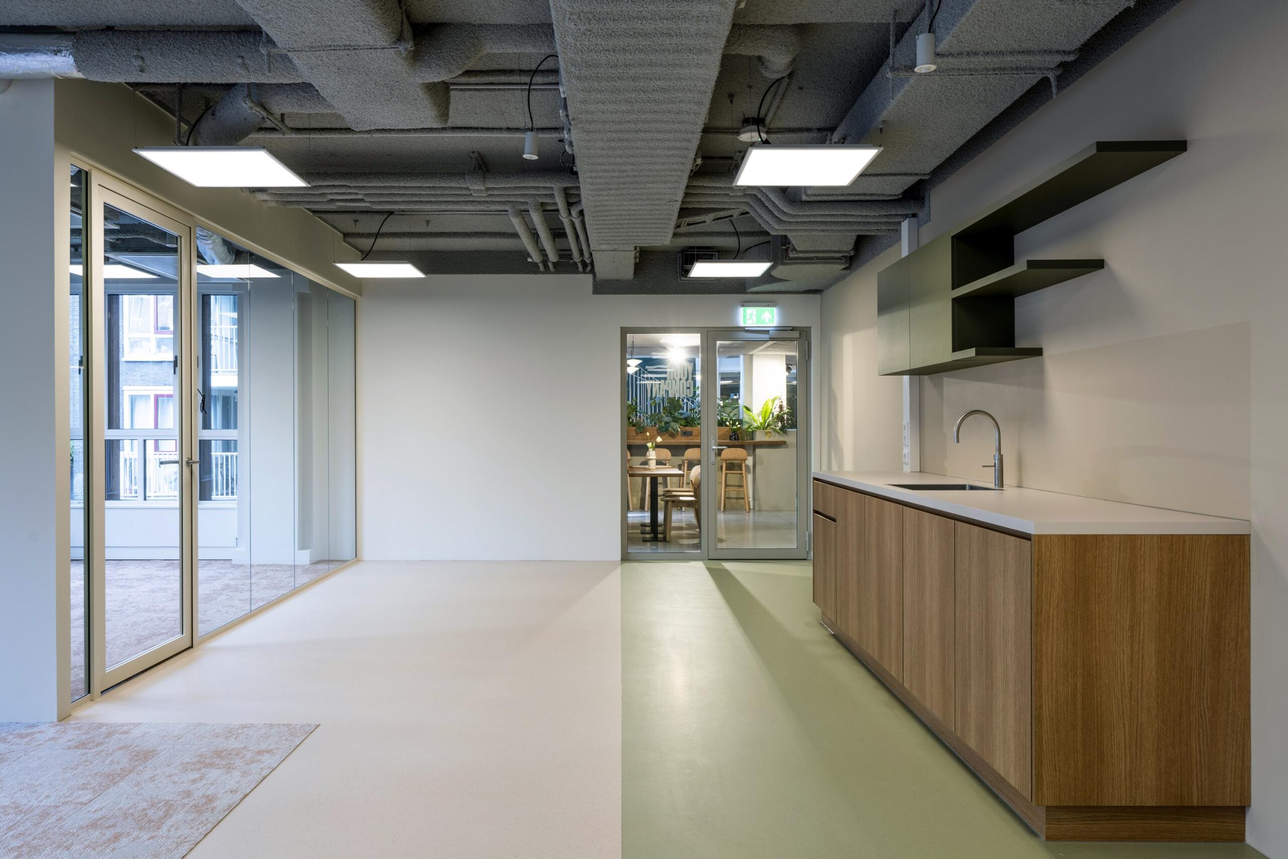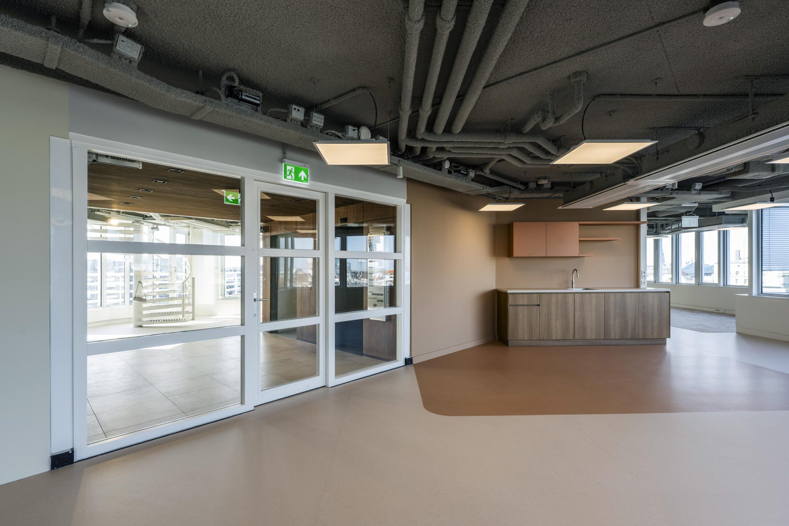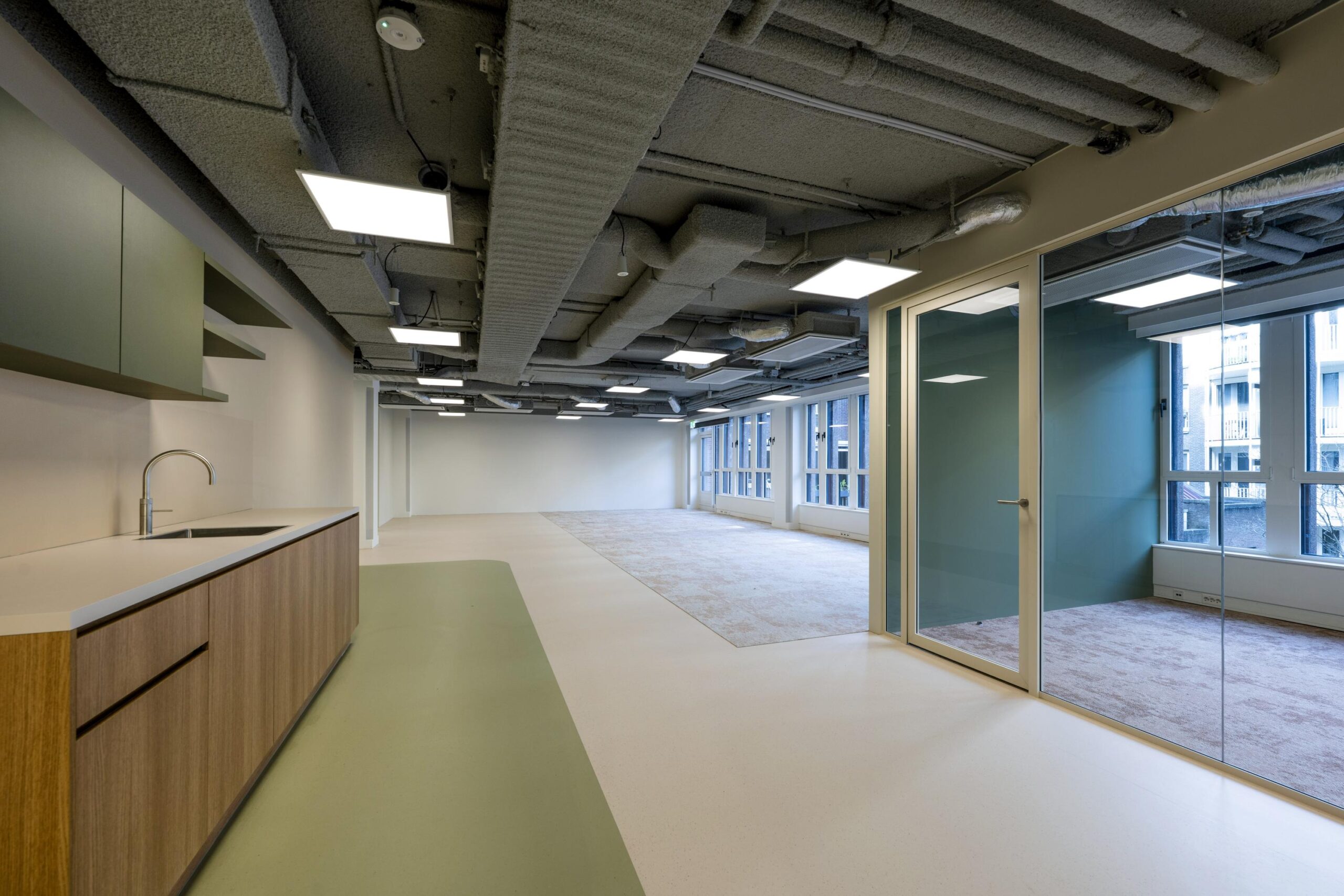De ruimtes worden turn-key opgeleverd met o.a. volledig afgewerkte vloeren, verlichting, meeting rooms, pantry’s, klimaatinstallatie, toiletten etc.