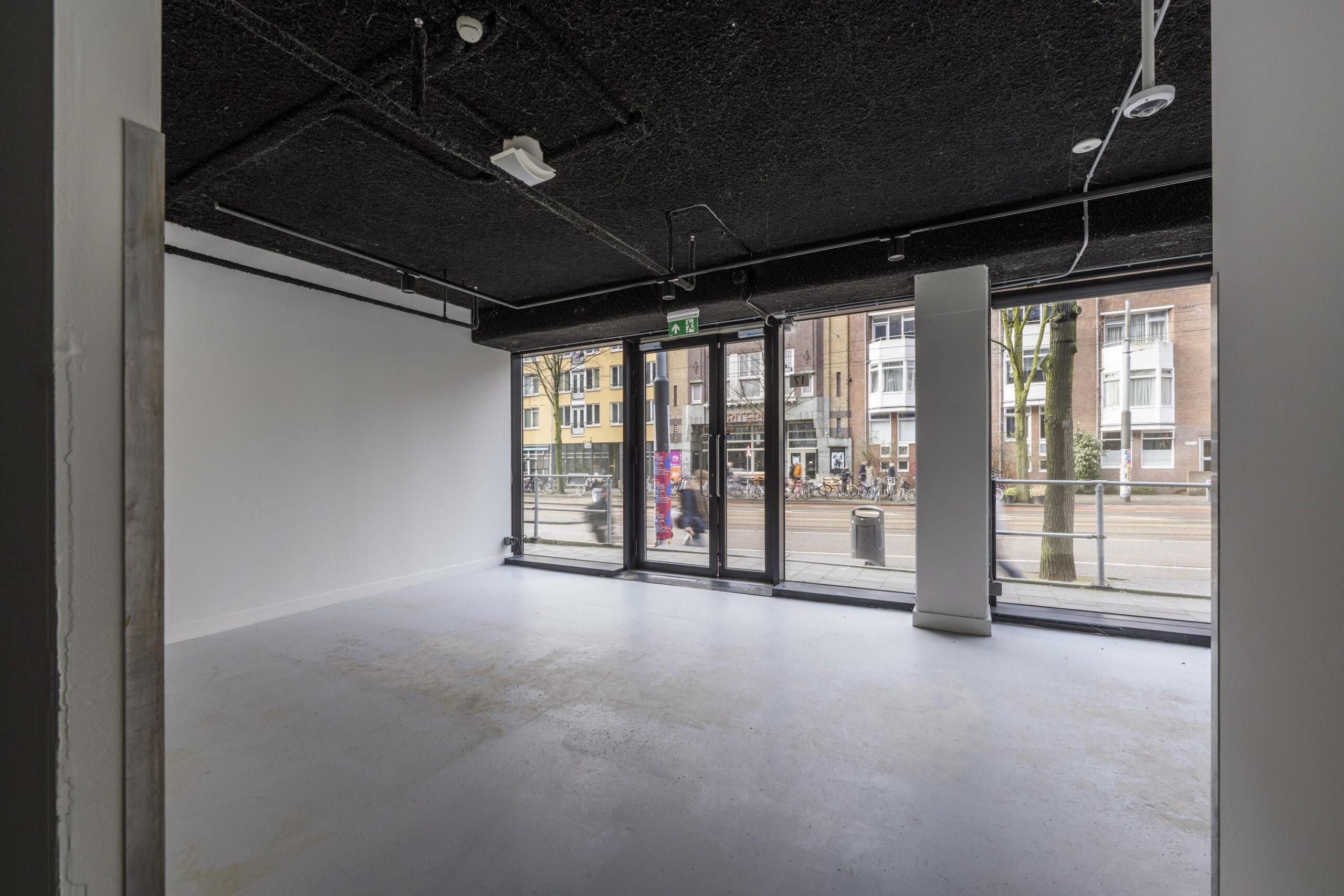 De ruimte ligt op een prominente zichtlocatie aan de Roetersstraat, midden in een dynamische omgeving met veel dagelijkse passanten zoals studenten, medewerkers, bezoekers en buurtbewoners.