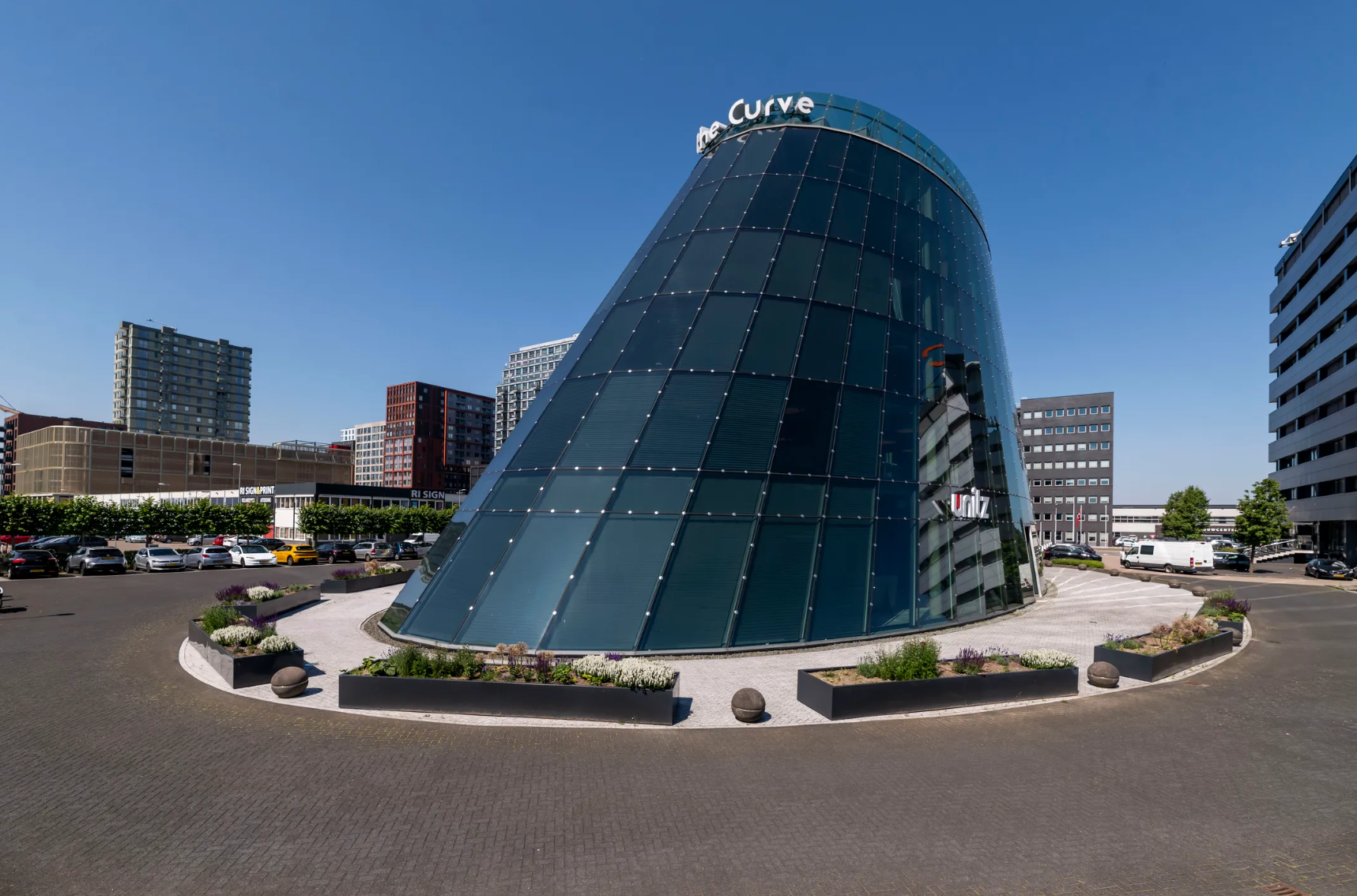 Het unieke kantoorproject ‘The Curve’ is gelegen te Amsterdam Noord. De ellips vorm van het gebouw maakt dat ‘The Curve’ een bijzonder en zeer uniek uiterlijk heeft met een eigen karakter. De vloeiende rondingen van het gebouw worden geaccentueerd door het trapsgewijs verloop naar boven van de getordeerde glazen elementen. Door de materialisatie en de industriële afwerking, waarbij het beton en staal in het gebouw te zien blijven, is ‘The Curve’ een gebouw met een eigen identiteit.