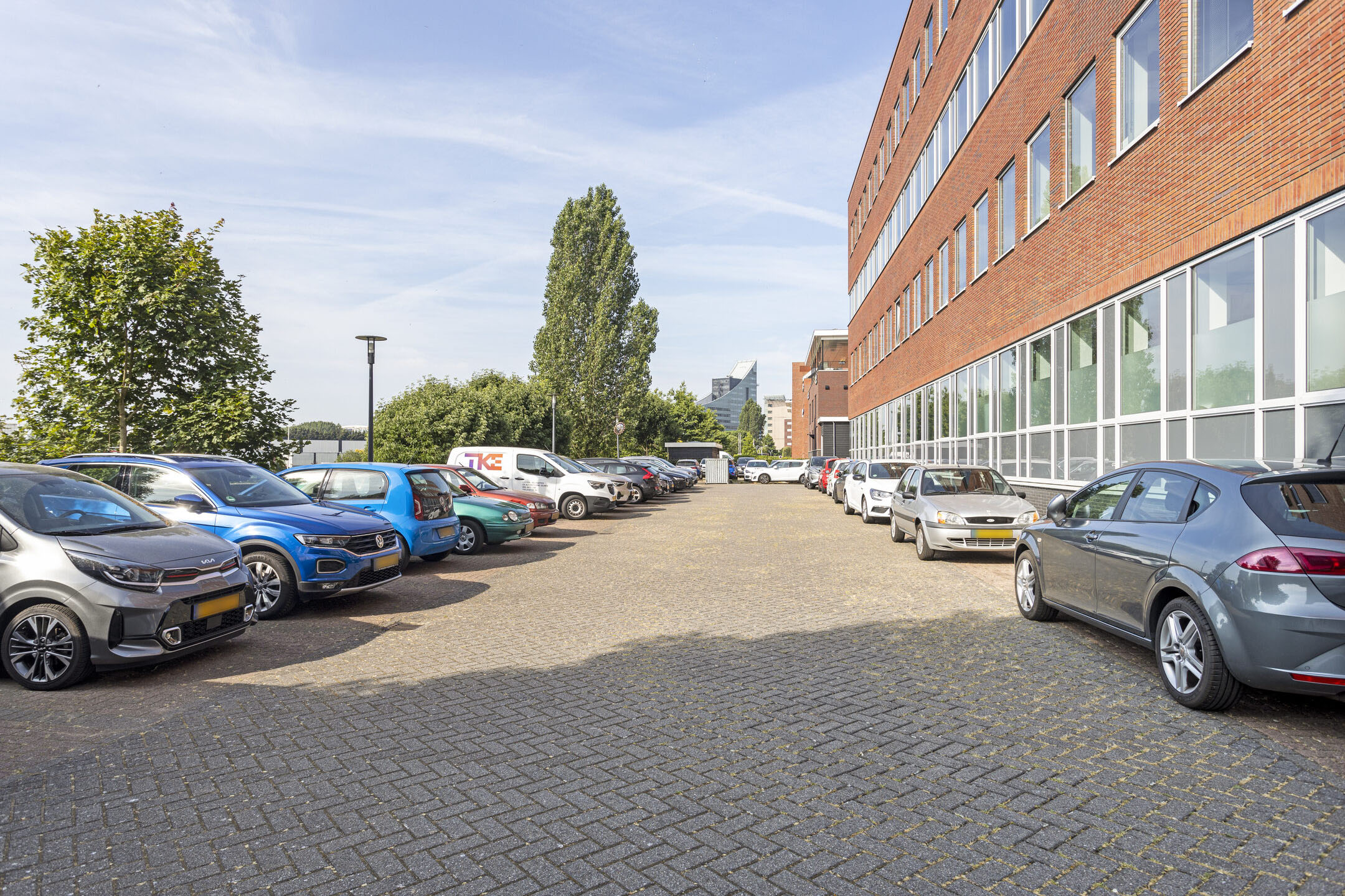 Het gebouw beschikt over een eigen parkeerterrein, voor de verhuur zijn 9 aangewezen parkeerplaatsen beschikbaar. In aanvulling hierop is er direct naast het gebouw een openbaar parkeerterrein aanwezig welke is voorzien van 4-laadstations voor elektrische auto’s. Verder is er in de directe omgeving van het gebouw een ruim aanbod aan (gratis) openbare parkeerplaatsen.