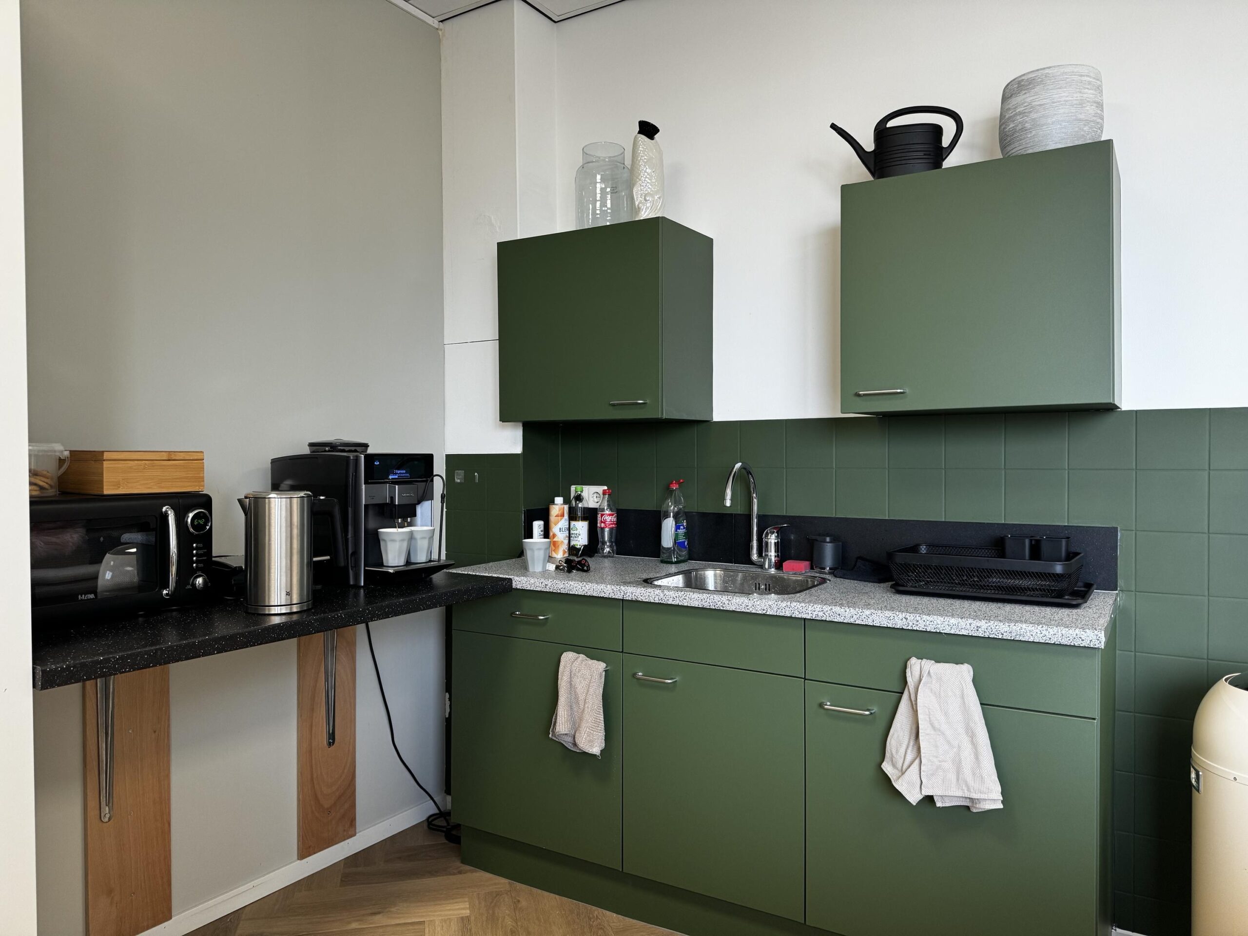 Op bedrijventerrein Pavijen in Culemborg aan de Industrieweg 18 is dit kantoor met een moderne look beschikbaar. De ruimte van circa 180 m2 is gelegen op de 1e verdieping en bestaat uit 4 kantoorruimtes met een eigen lunchruimte. De verhuurder heeft zijn best gedaan om dit een plek te maken waar u en uw collega’s graag komen werken. Zo heeft het kantoor een moderne uitstraling door de zwarte radiatoren, het zwarte tapijt, de mooie visgraatvloer in de gang en de groene pantry.