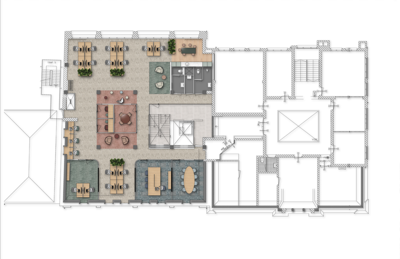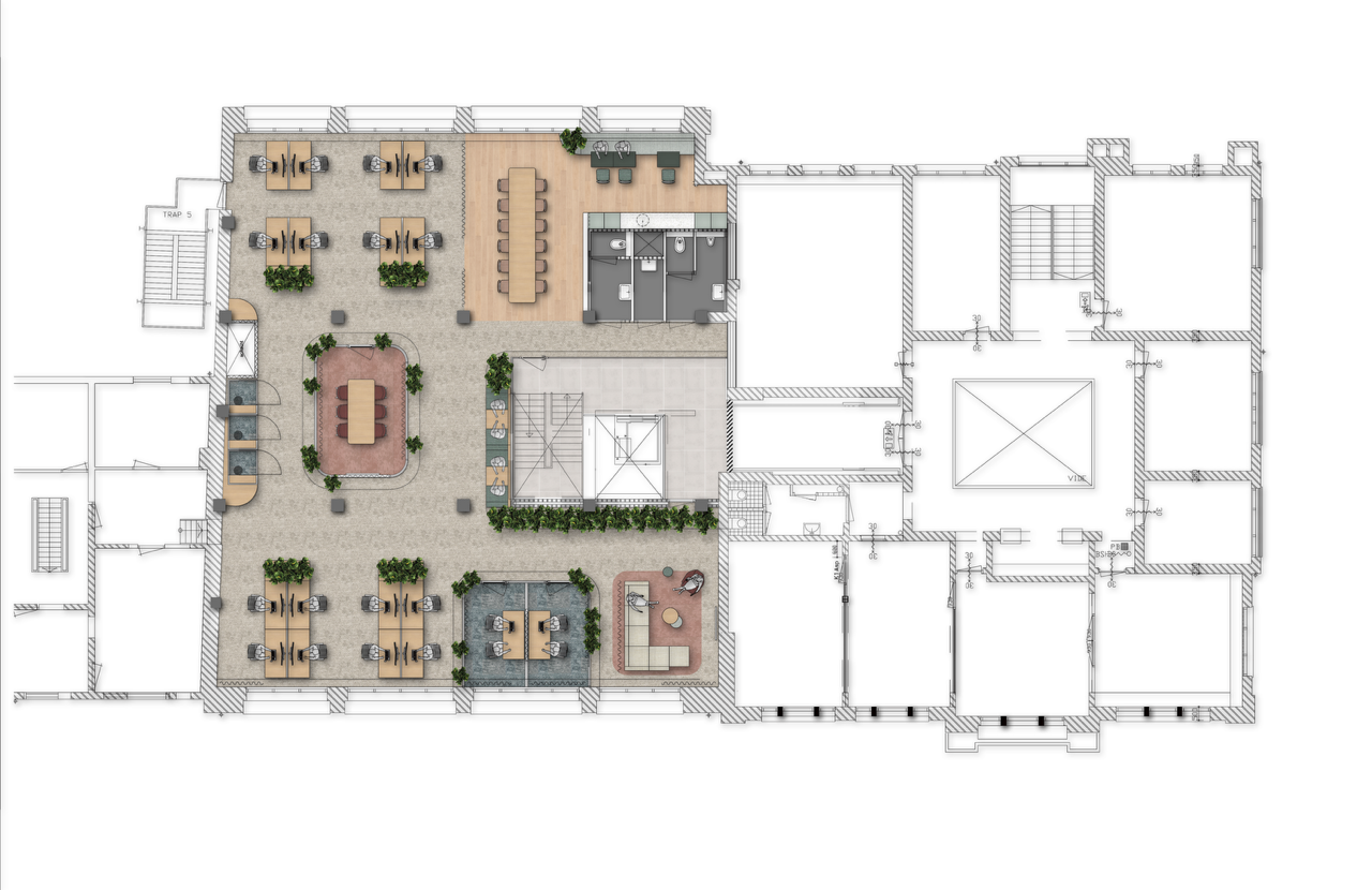 De kantoorruimten worden in hoogwaardig gerenoveerde casco staat opgeleverd.