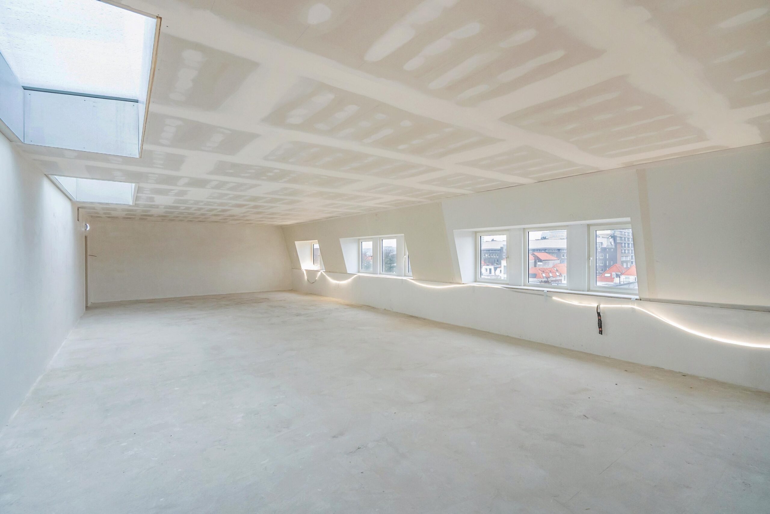 In overleg is keuze mogelijk tussen een systeemplafond met verlichtingsarmaturen of een industriële afwerking met zichtbare installaties.