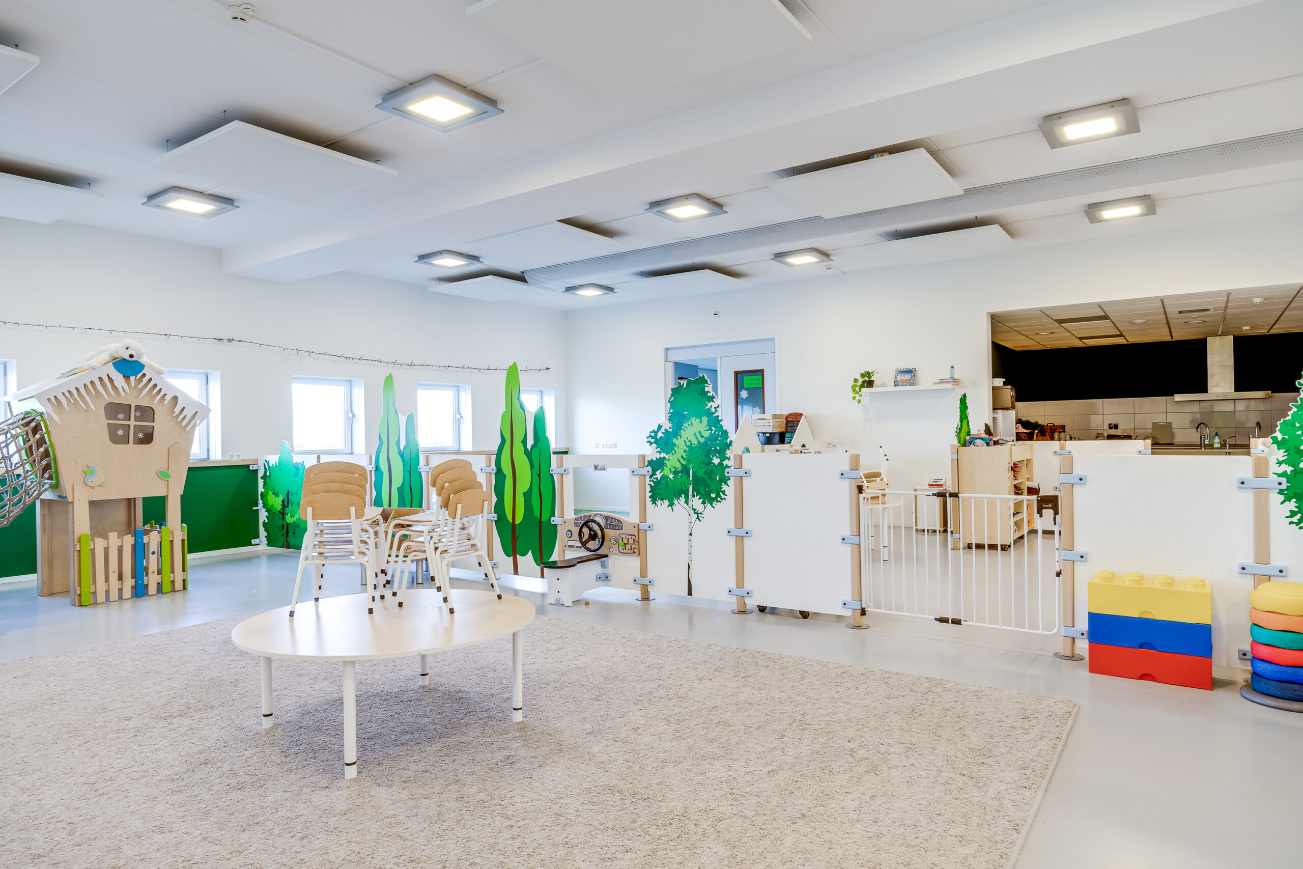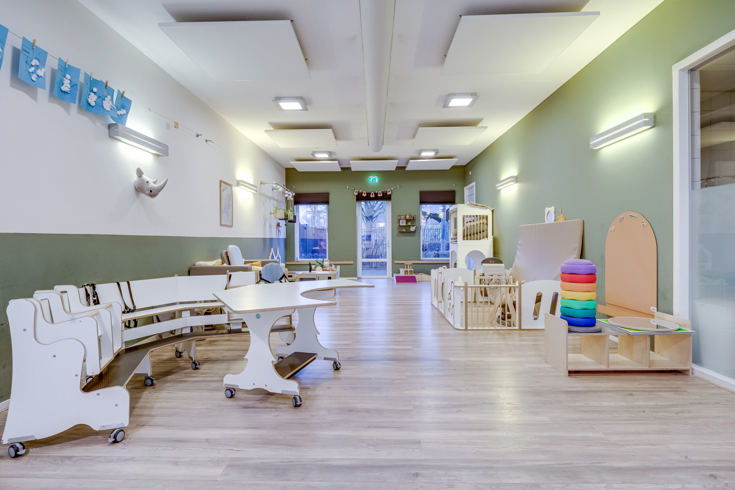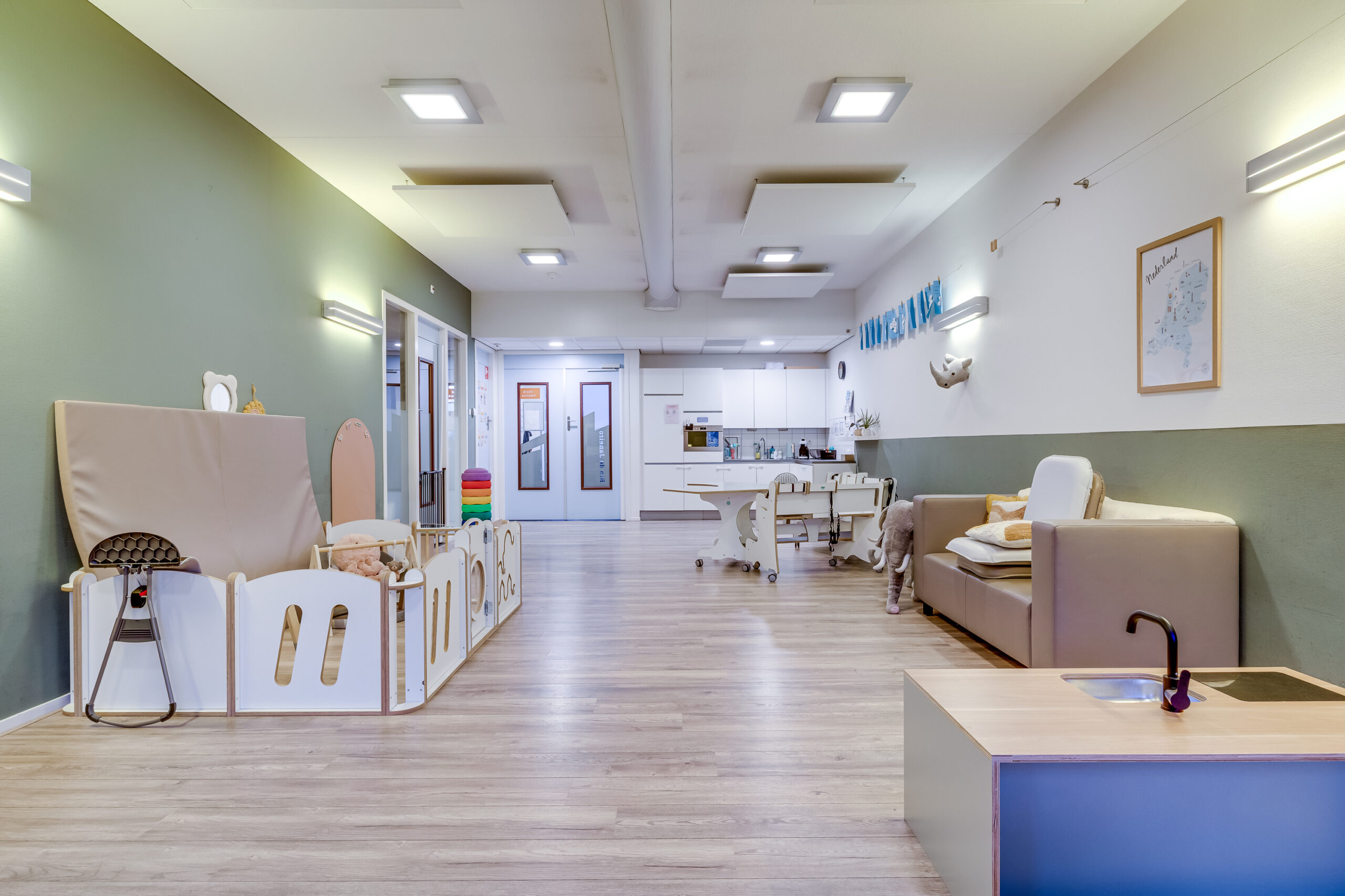 Het bouwdeel aan de linkerzijde doet dienst als hoogwaardig kindercentrum met lichte en ruime verblijfsruimtes en bijbehorende kantoor- en vergaderfaciliteiten. Op de verdieping zijn kantoor- en ruime gemeenschapsruimten, voor vergaderingen en evenementen, voorzien van een keukenruimte. Er is ook een bioscoopruimte met 21 zitplaatsen.