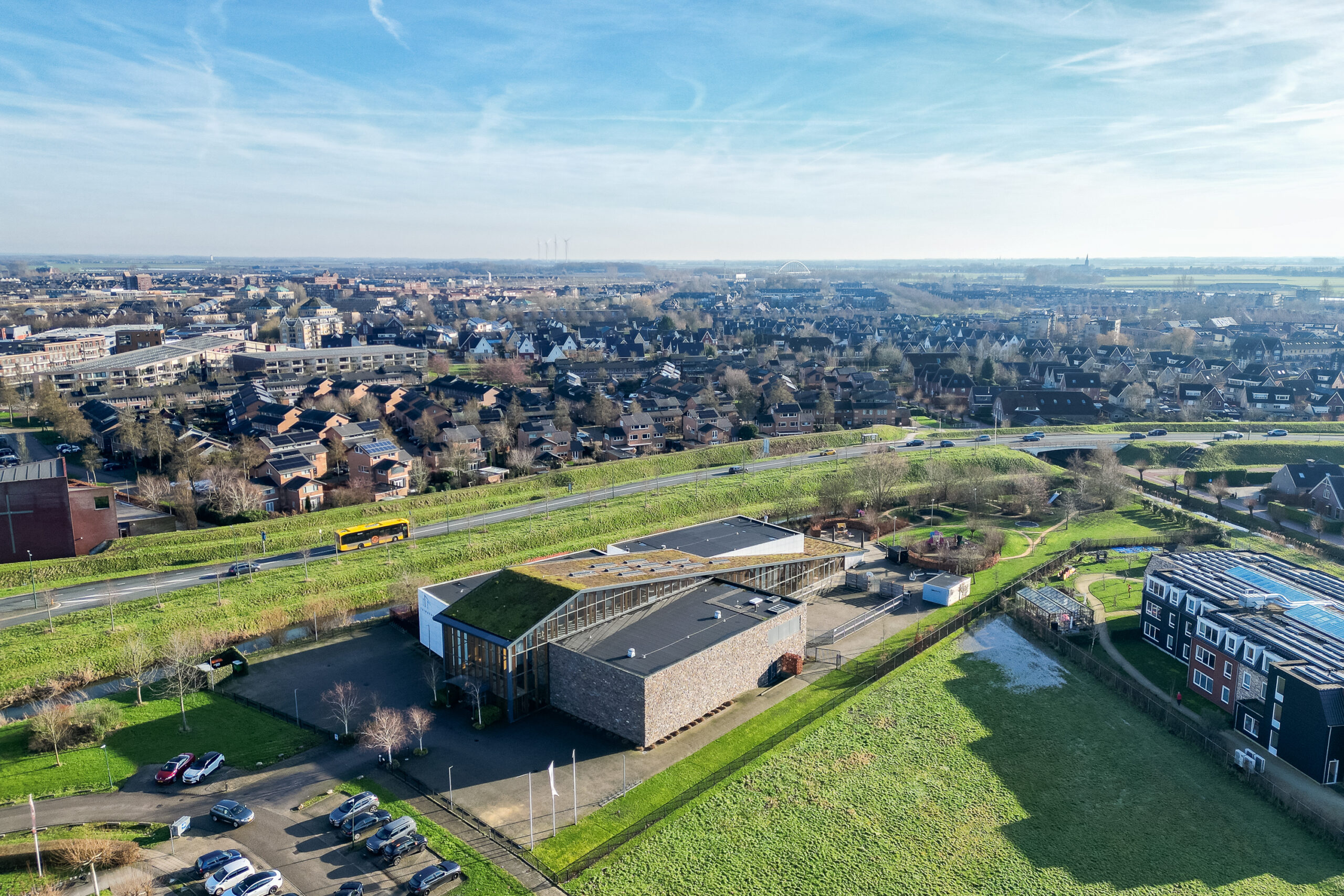 Het gebouw bestaat uit 3 bouwdelen, welke met elkaar zijn verbonden door een grote centrale entree met atrium en is totaal groot circa 2.565 m2 v.v.o. Op dit moment heeft het gebouw een mix aan gebruik, zijnde kinderopvang, bijeenkomstfunctie en sportfunctie.