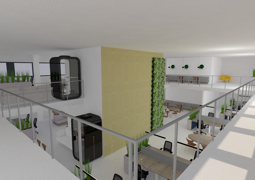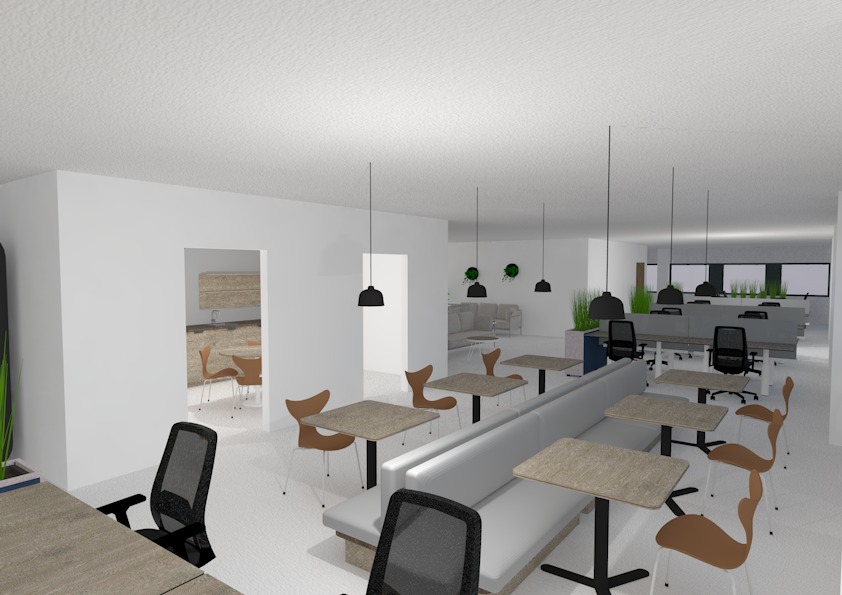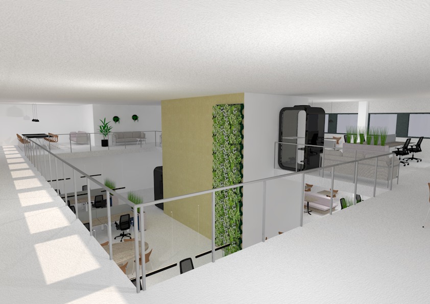 Het kantoorgebouw zijn volledig ingericht met elektrisch in hoogte verstelbare zit – sta bureaus, stoelen, kasten en ladeblokken, tussenwanden, vloerbedekking en planten (ook mogelijk om je eigen inventaris mee te nemen). Het kantoor beschikt verder over de volgende faciliteiten: