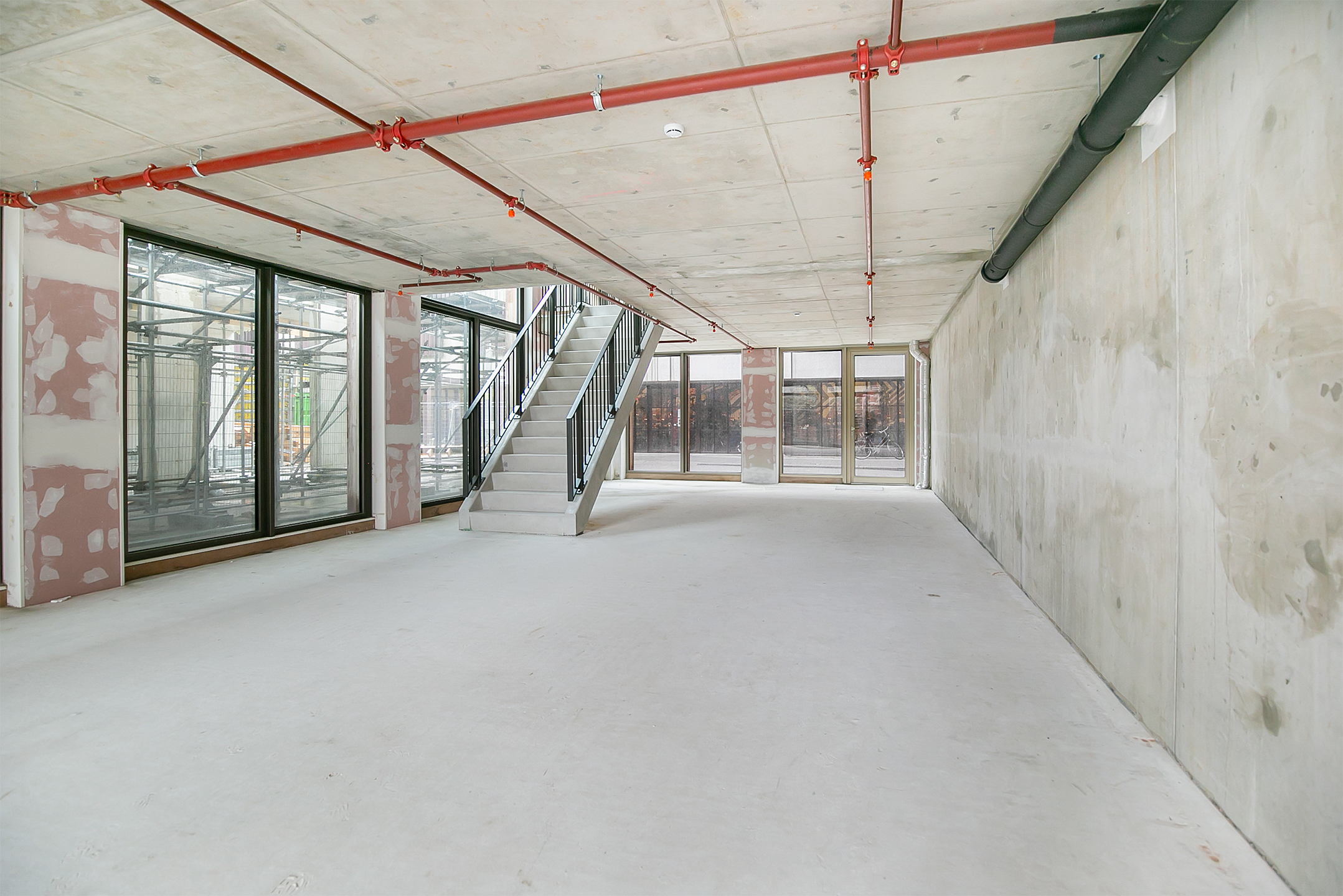 De ruimte is speels verdeeld over 2 lagen. Een begane grond van circa 198 m² met aansluiting voor een toilet. Klein open entresol van circa 44 m² en een entresol met open ruimte en aansluitingen voor 2 toiletten en mogelijk 2 douches van circa 89 m². De ruimte gelegen op een hoek beschikt over meerdere entree deuren, een sprinkler installatie en voorbereiding voor luchtbehandeling. Voor het overige wordt de ruimte geheel casco aangeboden.