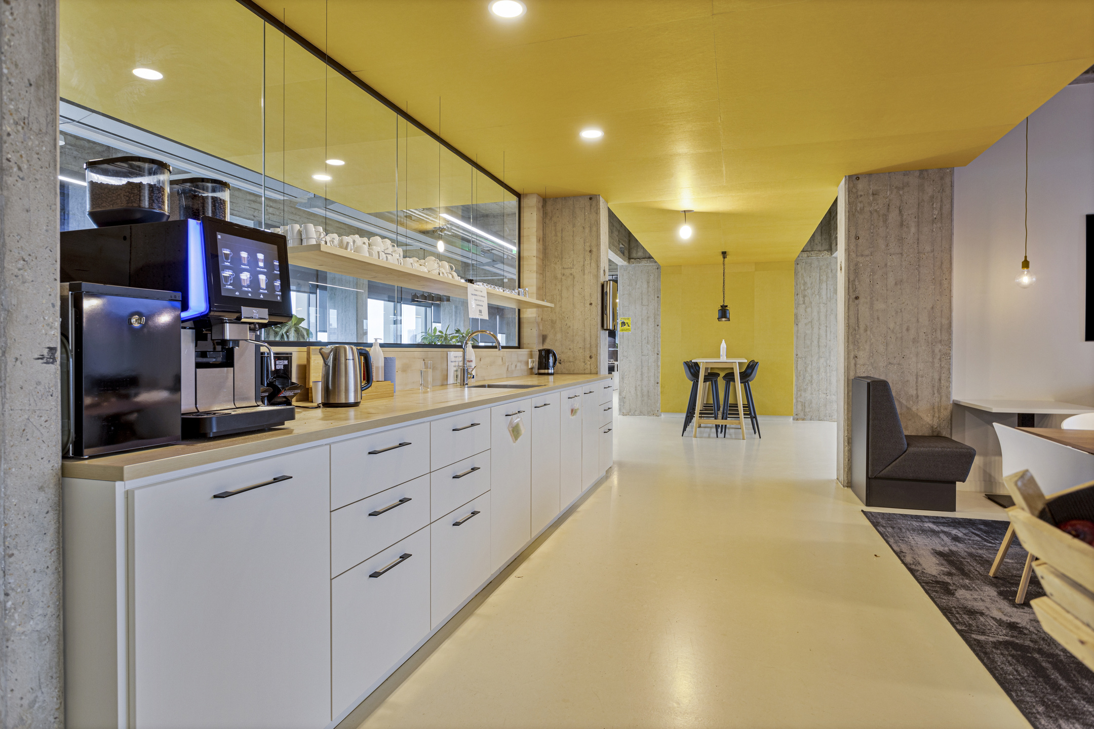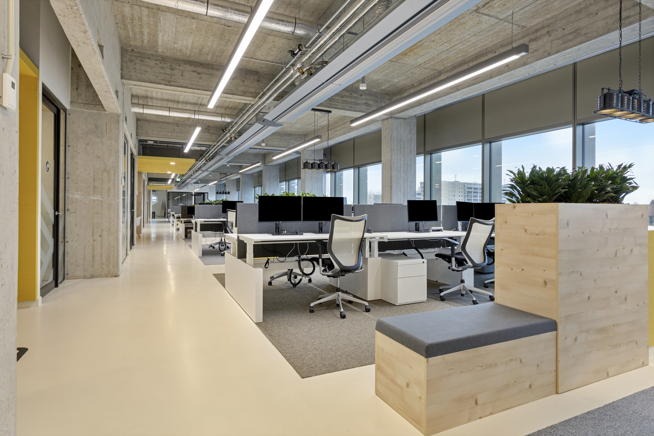 • industriële “look & feel” met hoge plafonds en betonconstructie in het zicht;