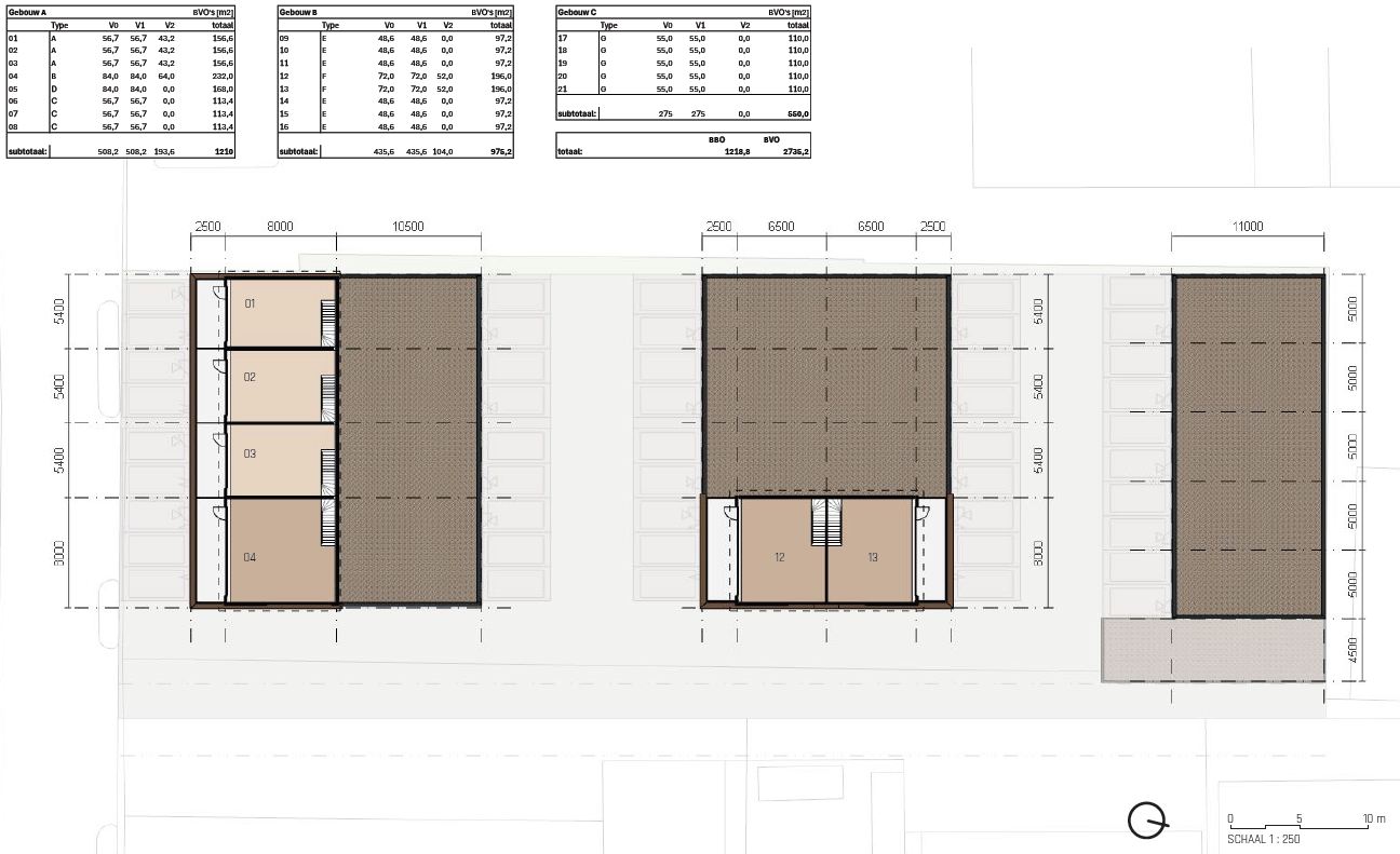 • Oppervlaktes variërend van ca. 97 m² tot 232 m²;