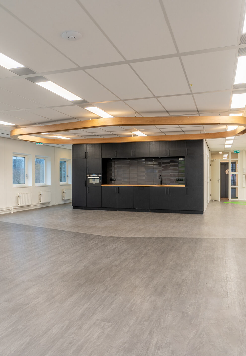Kantoorruimte € 165,– per m² per jaar, vermeerderd met b.t.w. en servicekosten.