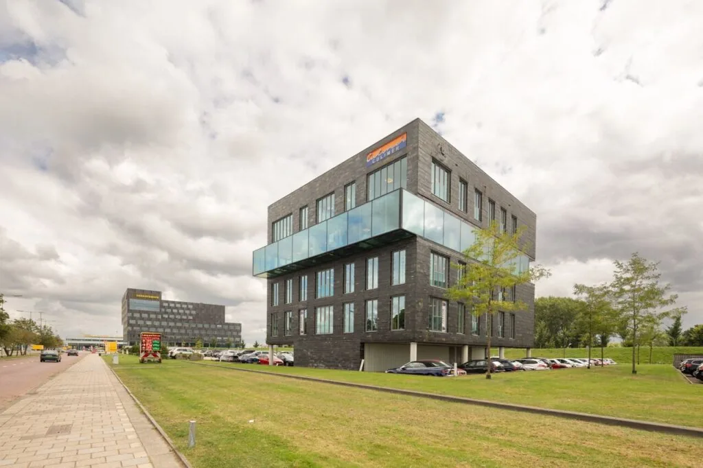 Het “zwevende” zelfstandige kantoorgebouw is gelegen op het bedrijventerrein van Rotterdam The Hague Airport aan de Rotterdam Airportbaan. Een bedrijventerrein met internationaal karakter. De gevels en de middenkern zijn in geheel in Chinees leisteen gecombineerd met glas opgetrokken. De entree is gelegen in het hart van het gebouw. Het gebouw is voorzien van een geavanceerd toegangscontrole met vingerscans en bewakingssysteem met cameraregistratie. Tevens zorgt het hoogwaardige koelingsysteem voor een continue aangenaam klimaat in het gehele gebouw.