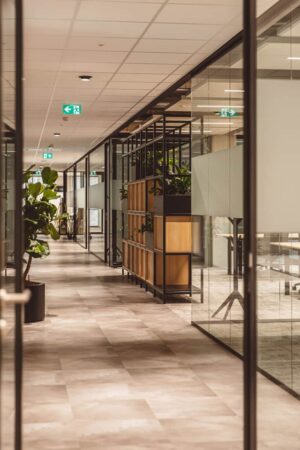 De kantoorvloer heeft een 360 graden uitzicht met uitstekende daglicht inval. De kantoorverdieping is o.a. voorzien van een ruime variëteit aan privé kantoren, open kantoortuinen en vergader- en ontmoetingsruimtes.