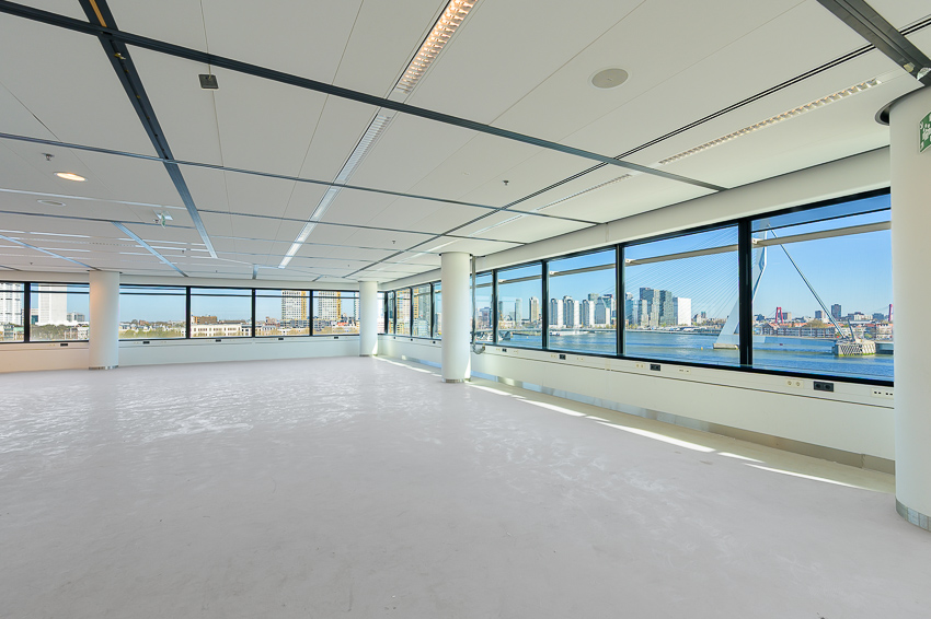 Het energiezuinige gebouw (EPC-label A en is BREEAM en WELL gecertificeerd) omvat in totaal circa 35.000 m² v.v.o. kantoorruimte waarvan wij momenteel ca. 1.000 m² v.v.o. kantoorruimte voor de onderverhuur beschikbaar hebben verdeeld over de 6e en 31e verdieping. Vanaf deze verdiepingen van het kantoorgebouw heeft u mede door de grote, hoge raampartijen een prachtig uitzicht over Rotterdam.