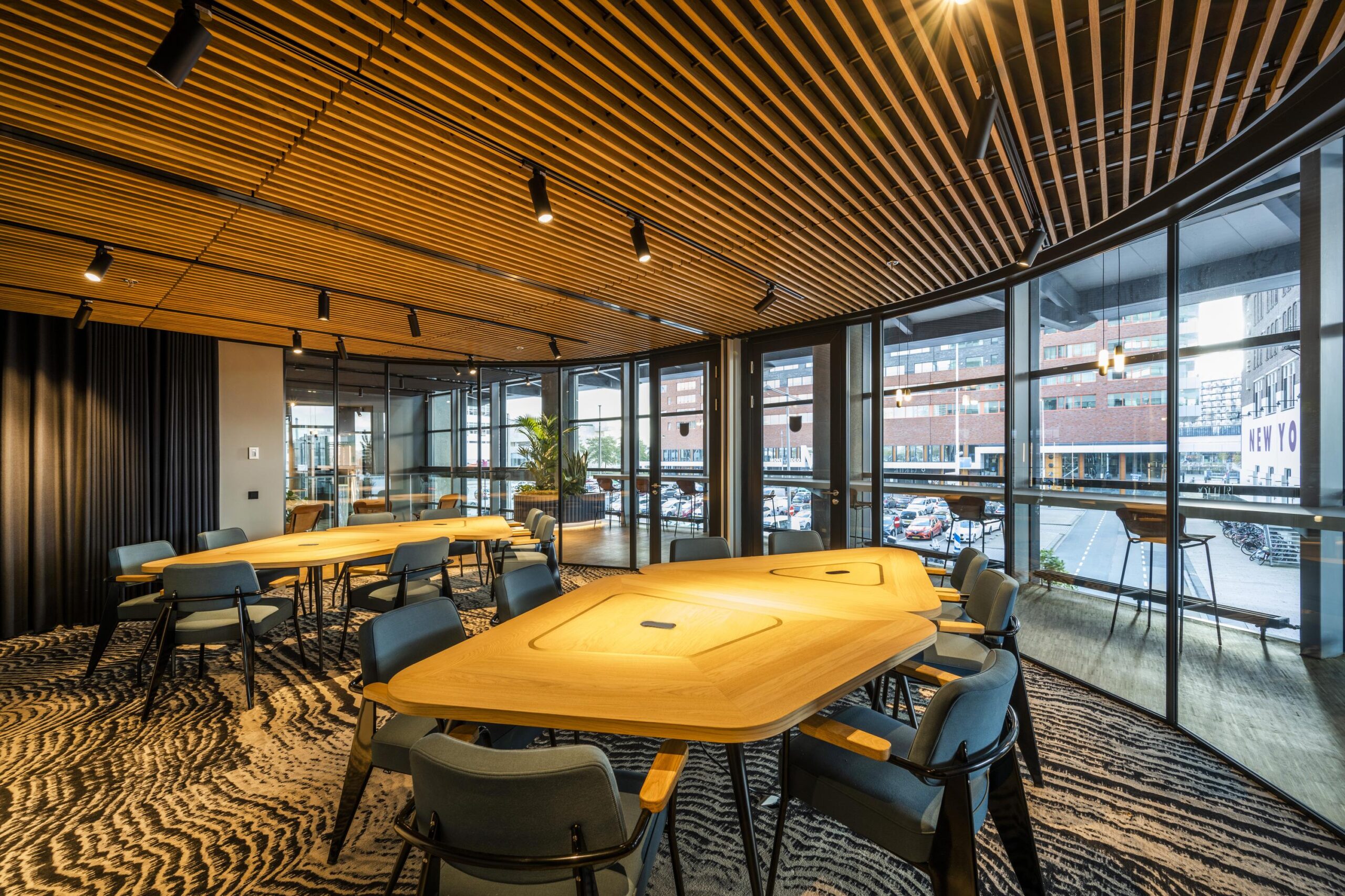 – uitgebreid bedrijfsrestaurant, voorzien van een bar en een afgeschermd terras met uitzicht op de nieuwe Maas;