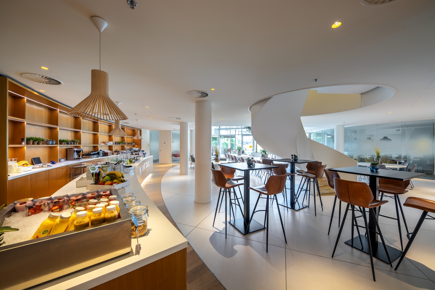 Namens verhuurder is een exploitant vanaf 08:00 tot 14:30 uur aanwezig voor de invulling van de koffie corner en de lunchfaciliteiten. Het assortiment bestaat uit een dagelijks afwisselende soep, warme specials, koude specials, salade bar, diverse broodjes, divers beleg, fruit, yoghurt en diverse dranken. De kosten voor producten dienen door gebruikers zelf te worden voldaan. Eventueel kan huurder ook gebruik maken van de cateringfaciliteiten voor vergaderingen of evenementen.