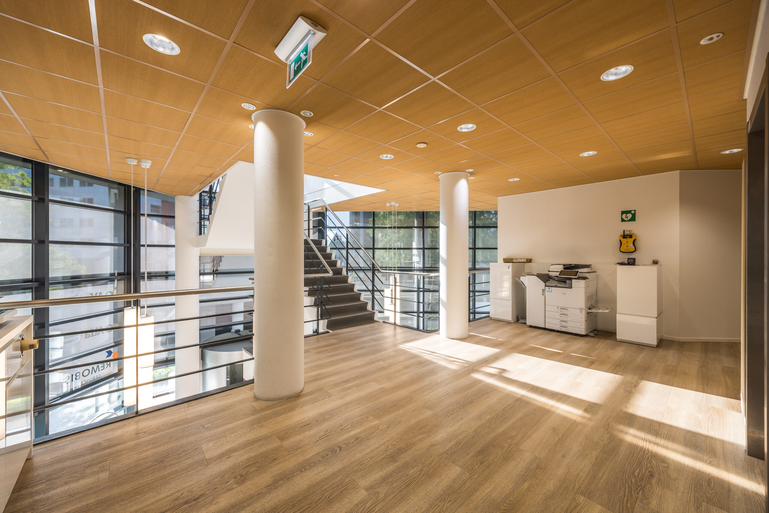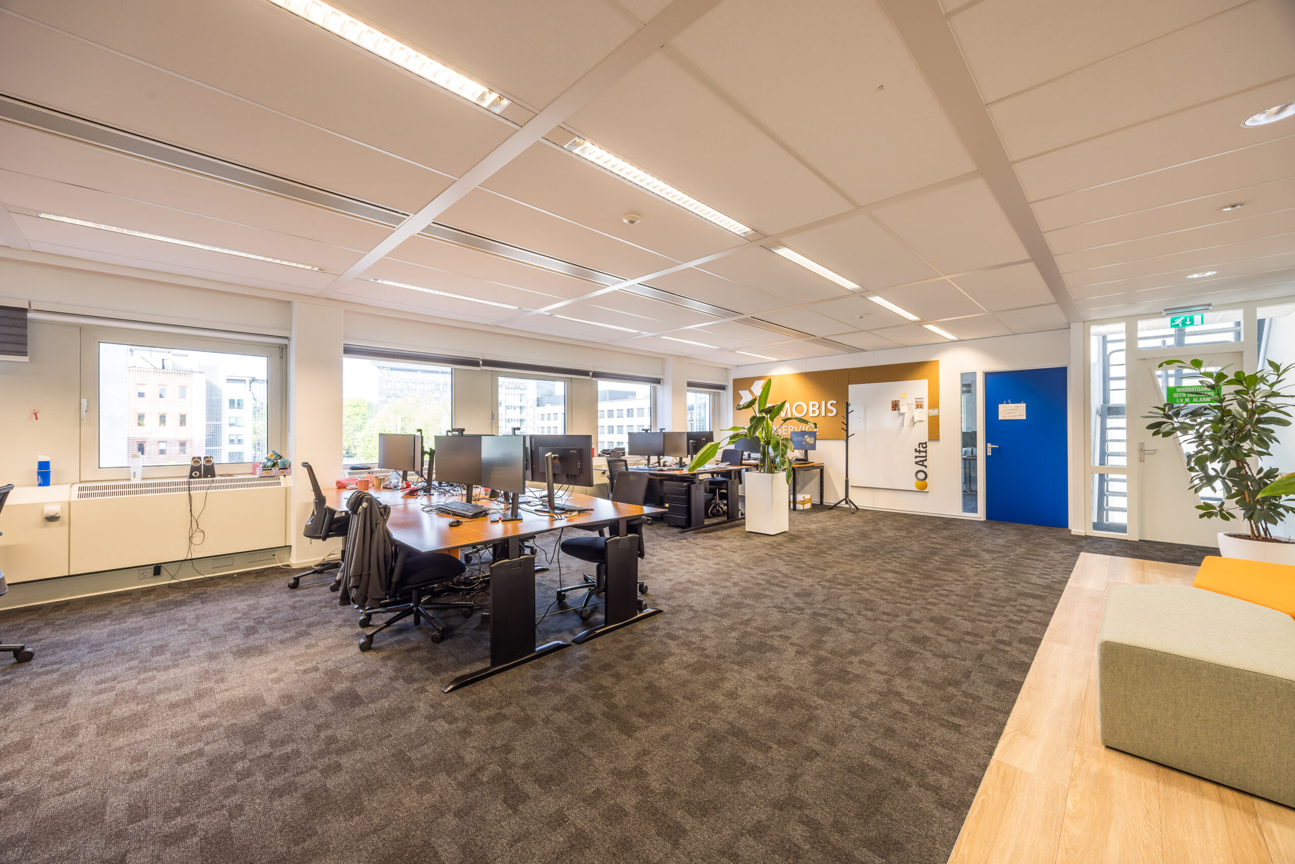 De kantoorverdiepingen worden in de huidige, turnkey staat aangeboden, met onder andere: